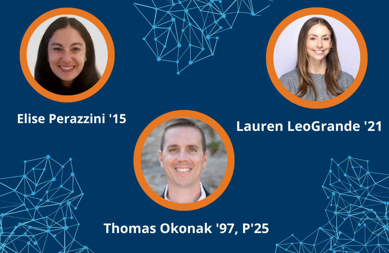By Austin Carroll ’26 Three Bucknell alumni working in data-focused roles—Elise Perazinni ’15, Lauren LeoGrande ’21, and Thomas Okonak ’97—joined Professor Kelly McConville, Director of the Dominguez Center for Data Science, for a virtual panel discussion…